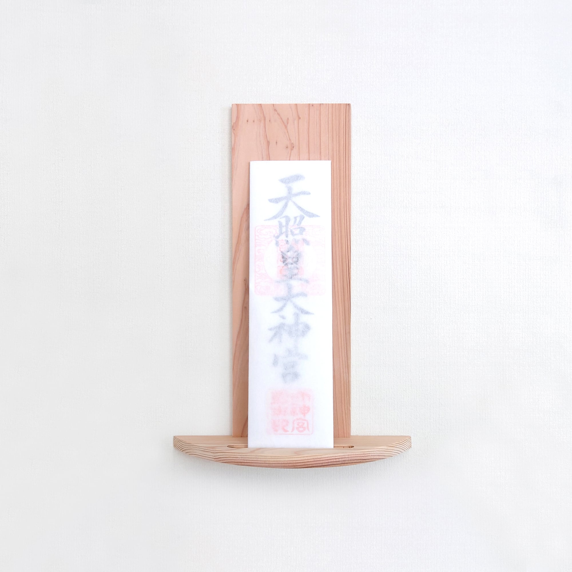 この神棚は、シンプルでありながら特長的な円弧型デザインが魅力です。あなたのインテリアに自然な美しさと趣をプラスします。杉の木目は自然素材ならではの豊かな風合いを持ち、どんな空間にも調和しやすくなっています。