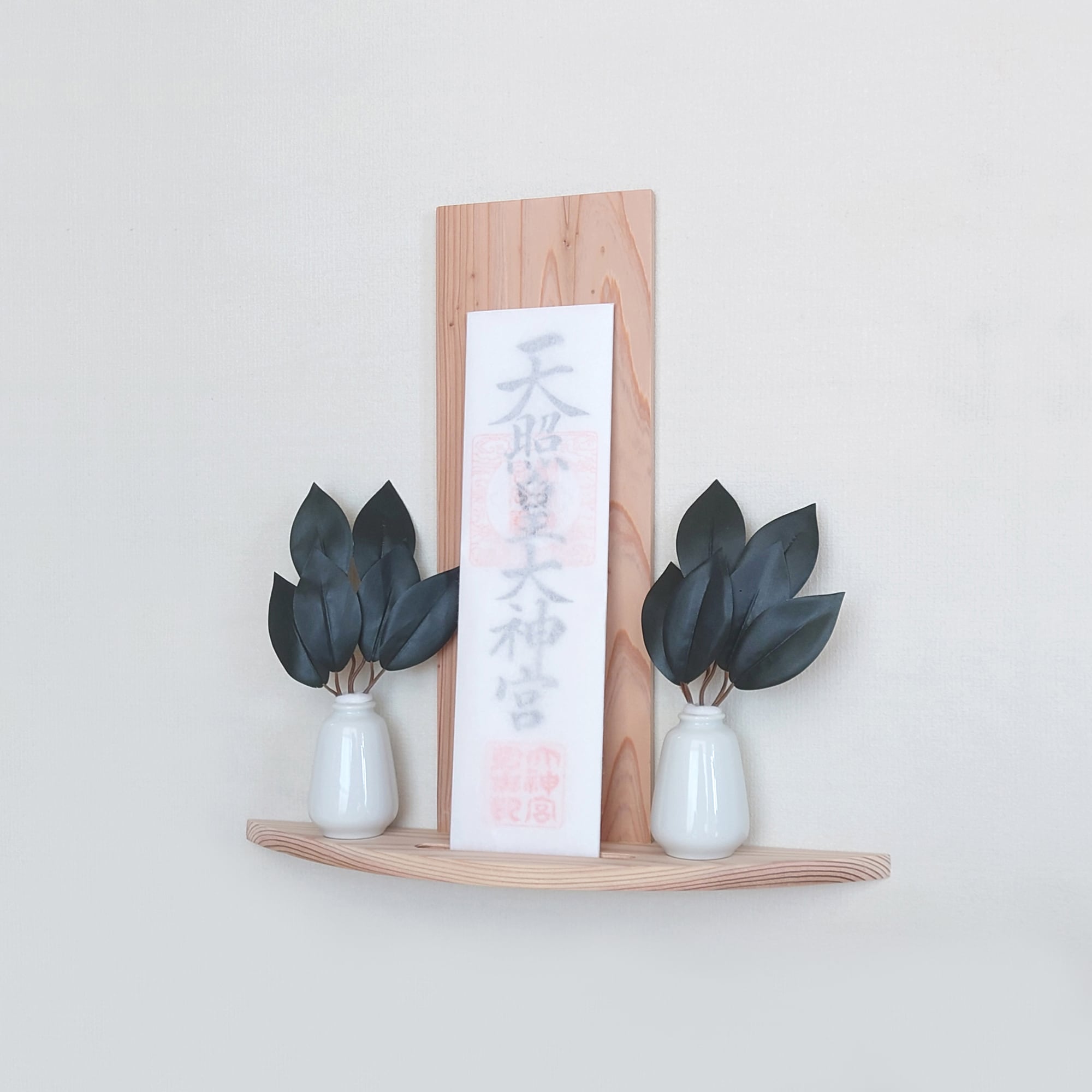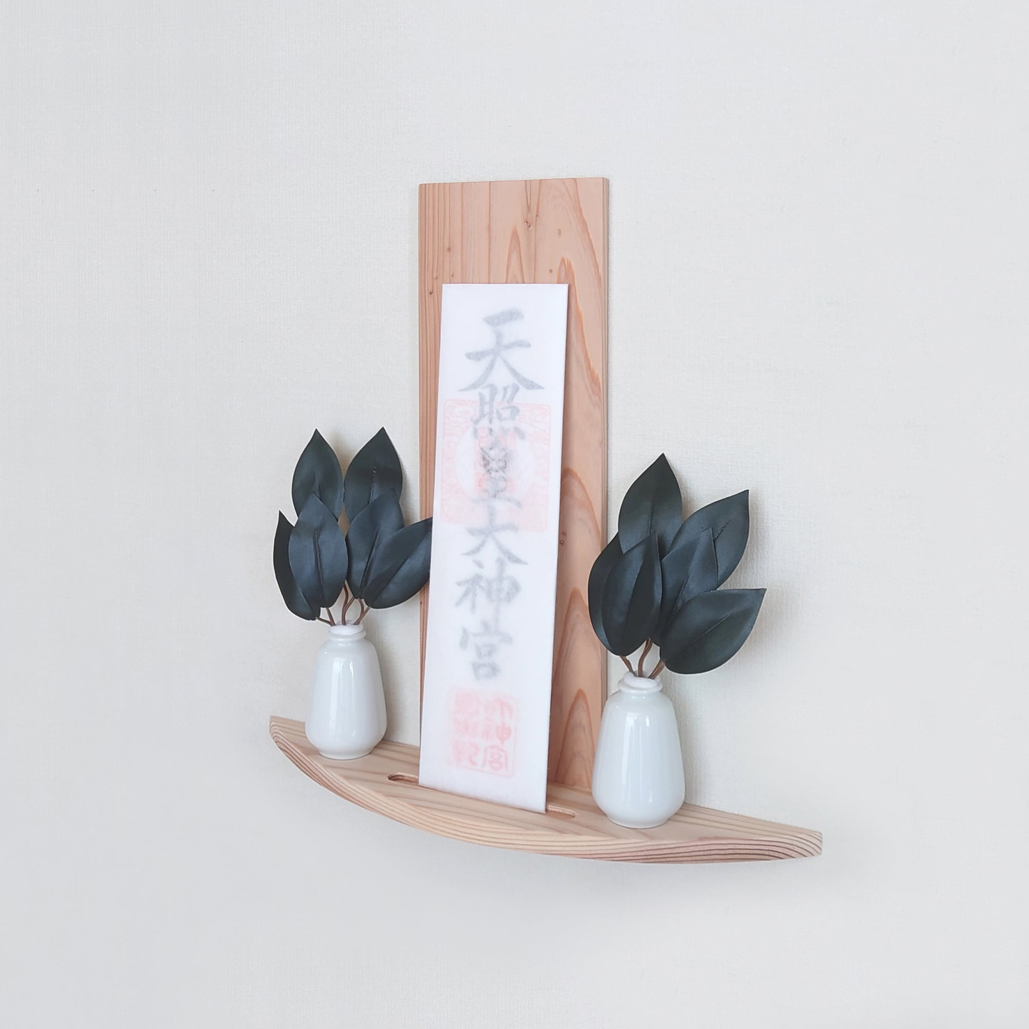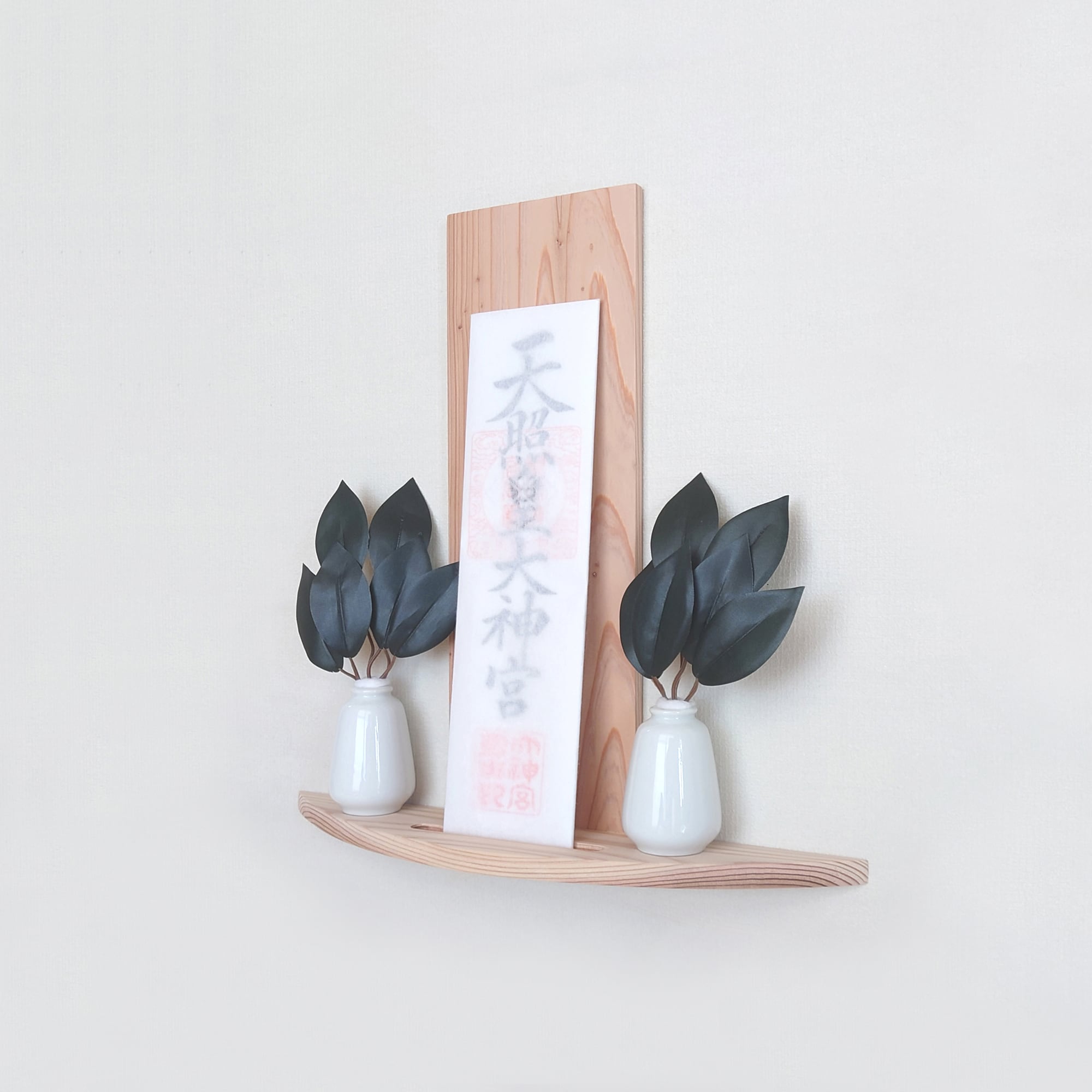 この神棚は、シンプルでありながら特長的な円弧型デザインが魅力です。あなたのインテリアに自然な美しさと趣をプラスします。杉の木目は自然素材ならではの豊かな風合いを持ち、どんな空間にも調和しやすくなっています。