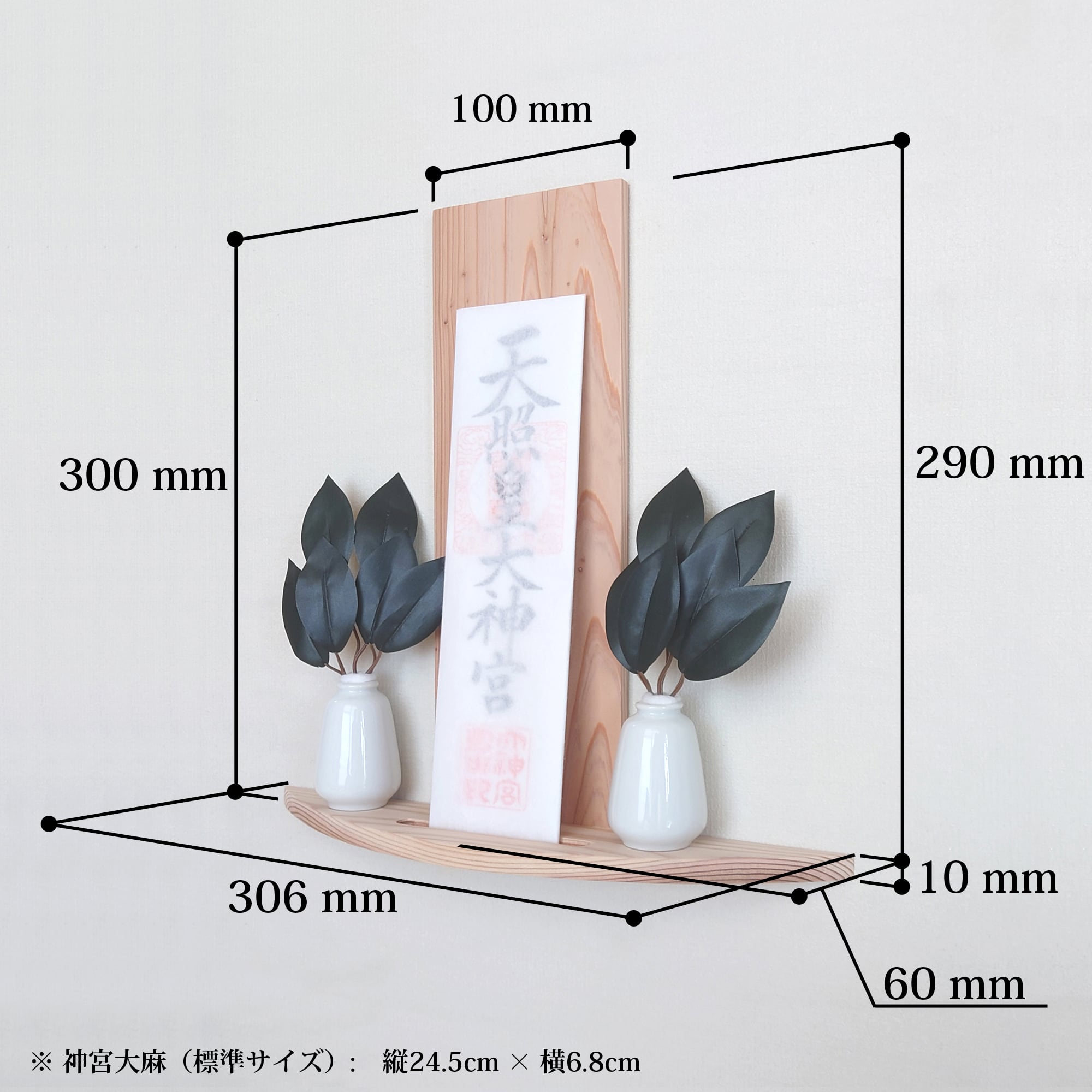 宮崎県産 杉の神棚【幅306mm・円弧型】